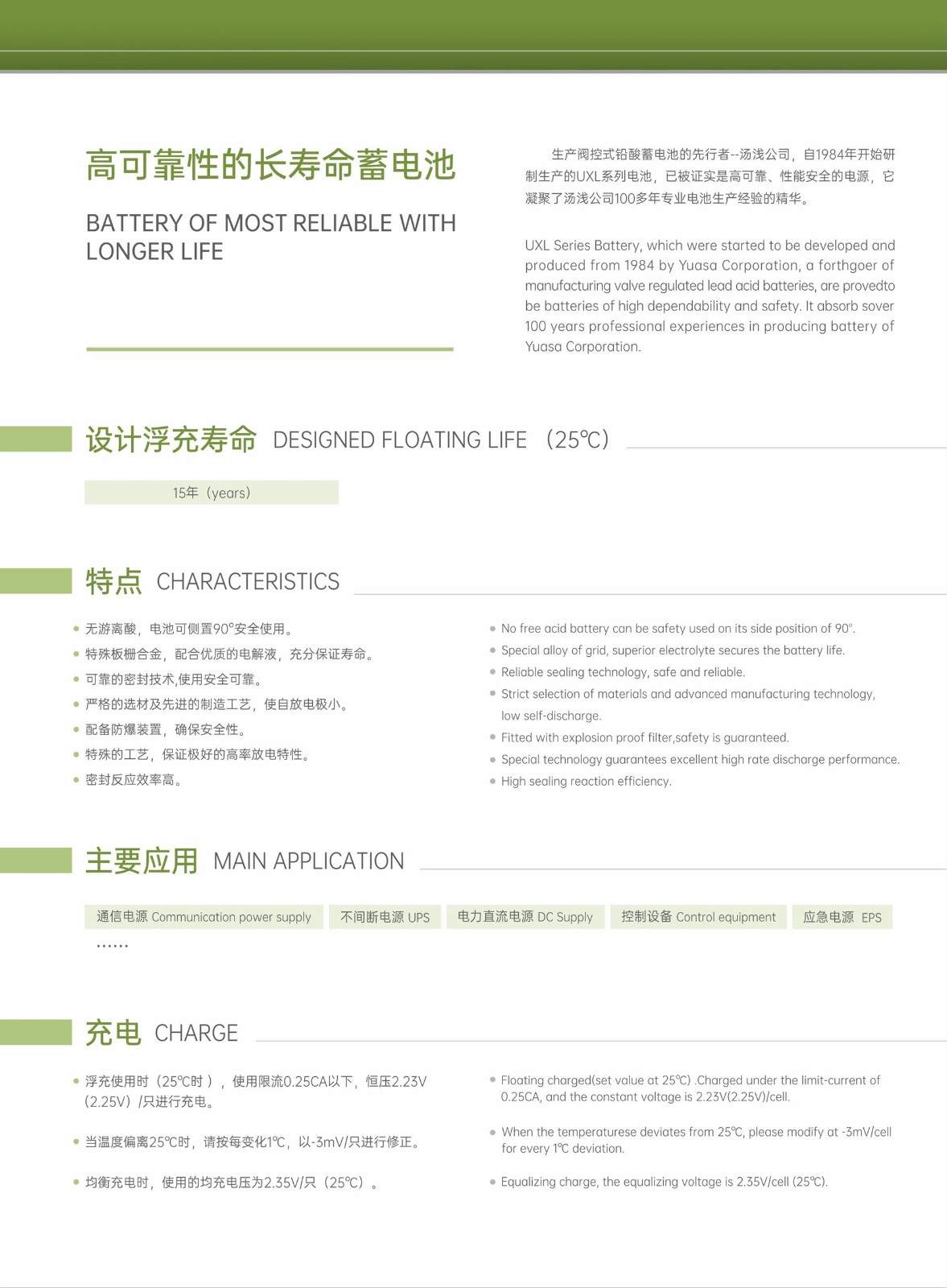 The UXL series has a variety of models of batteries to choose from, which are provided to our customers as a reliable product.